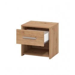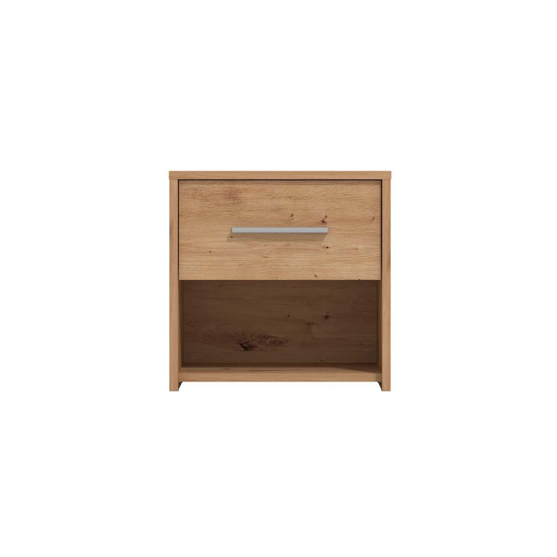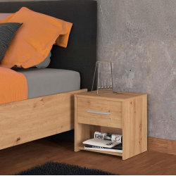 www.mipuntomovil.com Mesita de noche con 1 cajón modelo LISA, fabricada en melamina y patas de metal. Disponible en color roble. Medidas: Largo 45 x Fondo 35 x Alto 56,4 cm