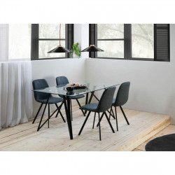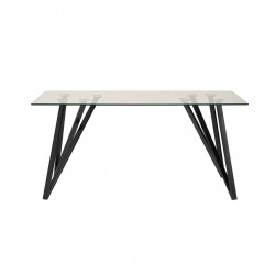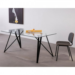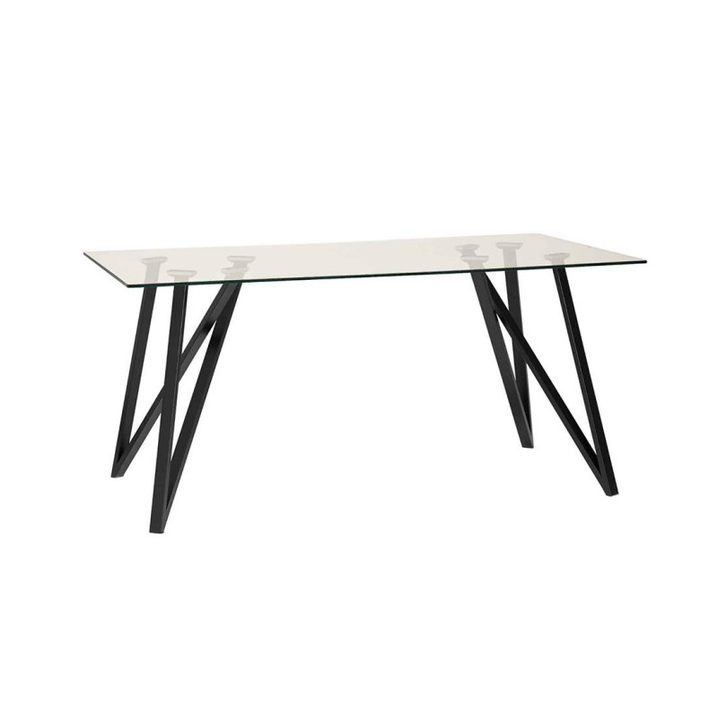 Mesa rectangular tapa cristal templado transparente modelo HAINAN, patas metálicas color negro texturizado. Medidas: Largo 140 x Fondo 80 x Alto 75 cm.