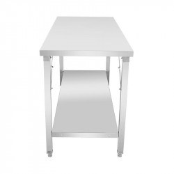 • Construida completamente en acero inoxidable, esta mesa de trabajo es ideal para cocinas de restaurantes, hoteles, buffet, pastelería, etc. • Fácil de limpiar y mantener gracias a su material duradero y resistente a la corrosión. • Un estante inferior de acero inoxidable proporciona un espacio idóneo para guardar básculas, tablas de cortar, cajas de...