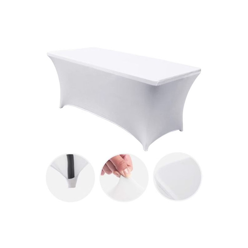 • Funda ideal para proteger o vestir tu mesa plegable • Ajuste elástico • Dimensiones: 240x74x74cm • Color blanco
