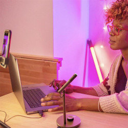 •Personalización total con knob de control inteligente. •Modos de audio: cardioide, reducción de ruido y mute. •Ajuste de ganancia del micrófono. •Brazo mecánico regulable omnidireccional. •Soporte de amortiguador antivibratorio. •Filtro pop de malla metálica. •Toma de auriculares sin latencia. •Iluminación Dynamic ARGB RING. •Materiales profesionales...