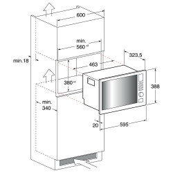 Microondas integraciónCapacidad 20 LitrosControl mecánicoGrill convencionalMarco acero Inox5 Niveles potencia8 Funciones automáticasMicroondas. Grill. Combi. DescongelarIluminación interiorBloqueo niñosInterior acero inoxApertura por botón1 Parrilla grill1 Plato giratorio vidrio 245 mmNivel sonoro 63 dBMedidas aparato alto/ancho/fondo 388x595x343...
