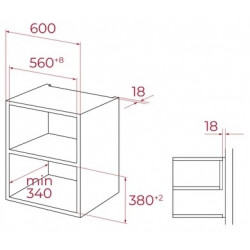 Altura (mm)>>>382 Ancho (mm)>>>595 Capacidad (L)>>>20 Color>>>Inox Diseño>>>Integrable Fondo (mm)>>>315 Grill>>>Sí Potencia de microondas (W.)>>>800 Potencia del grill>>>1000 W