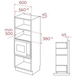 Microondas integraciónCapacidad 20 LitrosControl mecánicoGrill convencionalMarco acero Inox5 Niveles potencia8 Funciones automáticasMicroondas. Grill. Combi. DescongelarIluminación interiorBloqueo niñosInterior acero inoxApertura por botón1 Parrilla grill1 Plato giratorio vidrio 245 mmNivel sonoro 63 dBMedidas aparato alto/ancho/fondo 388x595x343...