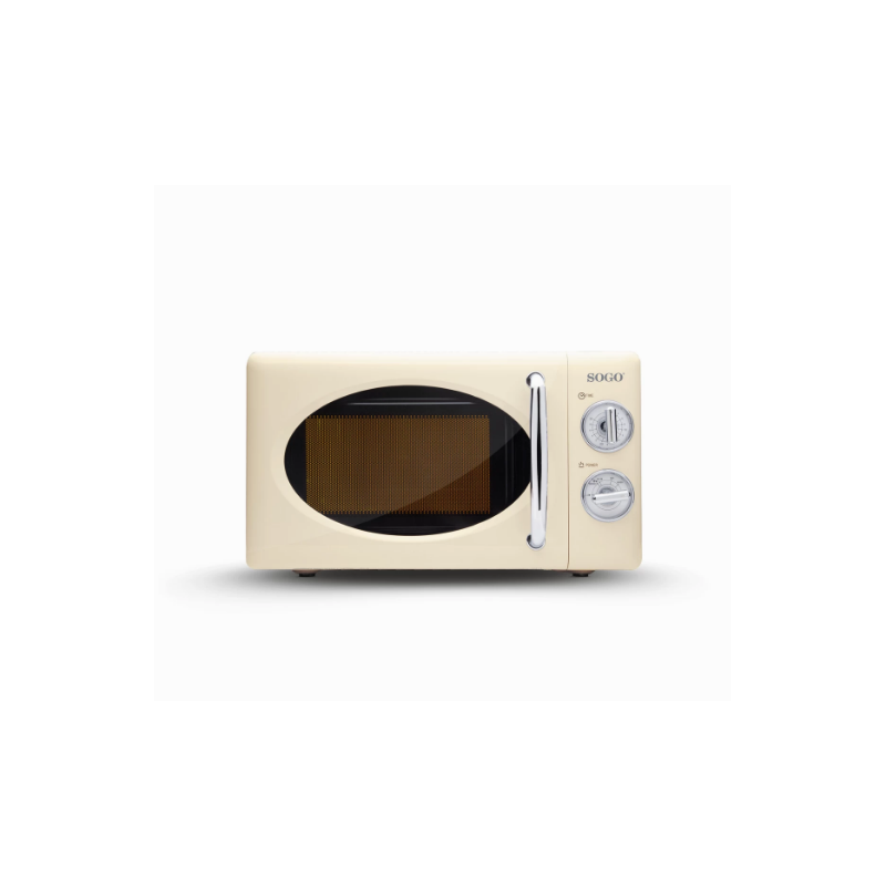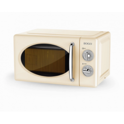 MICROONDAS SIN GRILL - SOGO RETRO SS-890 BEIGE, 20 LITROS, 700 WATIOS, 5 NIVELES, CONTROL MANUAL, ACABADO ESMALTADO BEIGE.