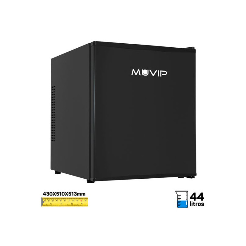 MINI BAR TERMOELÉCTRICO - MUVIP MV0533, 44 LITROS, CERRADURA, ALTO 51,3, ANCHO 43, FONDO 51 CM, COLOR NEGRO.