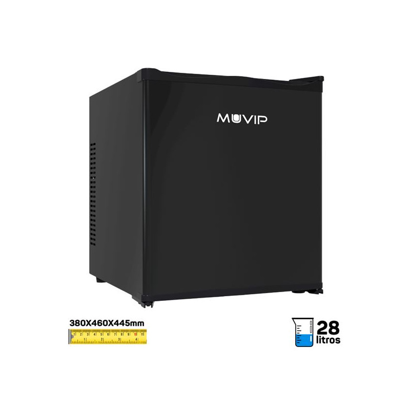 • Perfecto para hoteles, mantiene las bebidas frías y a la temperatura ideal. • Su capacidad de 36 litros ofrece un servicio excelente a los huéspedes. • Con estantes en la puerta. • Luz LED interior. • Puerta reversible. • Medidas: 38 x 44 x 47.4 cm.