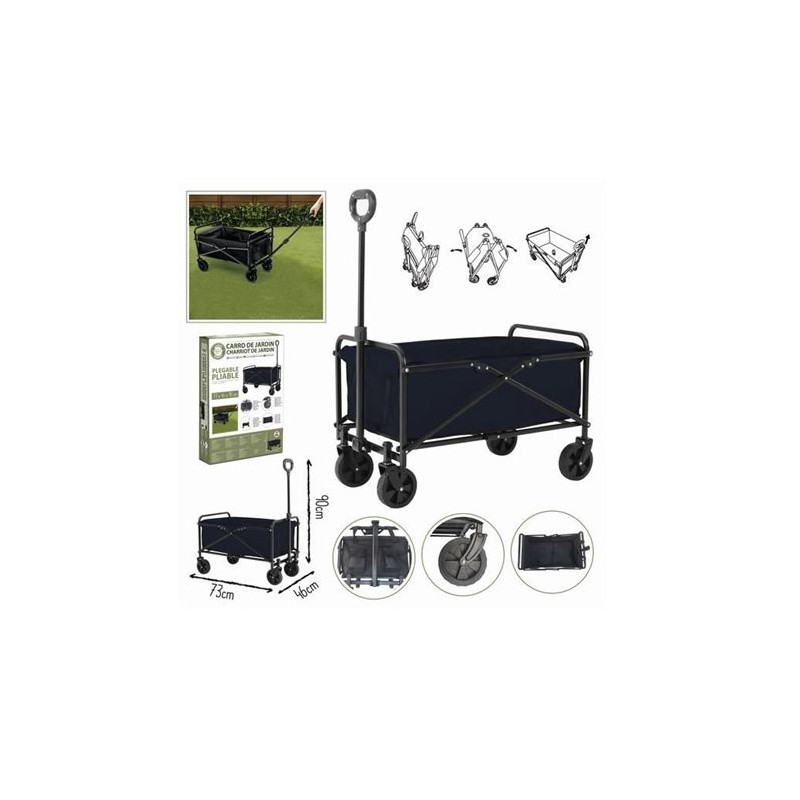 • Tipo: Carro plegable multiusos • Medidas: 75 × 44 × 76 cm • Altura total con asa: 98 cm • Material de la estructura: Acero negro • Capacidad de carga: 100 kg • Ruedas: 4 ruedas con rotación 360° • Asa: Telescópica con empuñadura ergonómica • Diseño: Plegable para fácil transporte y almacenamiento • Uso: Playa, camping, jardín, compras y transporte de...