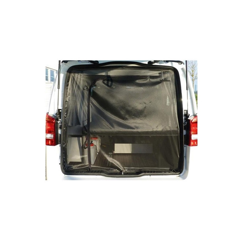 Mosquitera Trafic / Vivaro / NV300 2007/2013 LateralMosquitera resistente para puerta lateral derecha.Compatible con Renault Trafic, Opel Vivaro y Nissan NV300 (2007 - 2013).Fina malla mosquitera contra los insectos más pequeños, de calidad alta y duradera.En color negro, muy agradable a plena luz (evita el deslumbramiento).