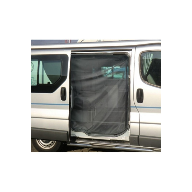 Mosquitera Trafic / Vivaro / NV300 2007/2013 LateralMosquitera resistente para puerta lateral derecha.Compatible con Renault Trafic, Opel Vivaro y Nissan NV300 (2007 - 2013).Fina malla mosquitera contra los insectos más pequeños, de calidad alta y duradera.En color negro, muy agradable a plena luz (evita el deslumbramiento).