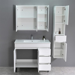 • Mueble de baño color roble.• Combinación perfecta de modernidad y funcionalidad.• Gran espacio para el almacenaje gracias a sus dos cajones con cierre suave.• Cajones sin tiradores.• Patas de aluminio.• Incluye lavabo cerámico.• Fácil de limpiar.• Grifería, espejo y columna no incluidos.