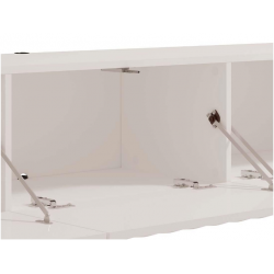 Mueble de tv con puerta abatible y 2 huecos para almacenaje extra. Disponible en color ártico/hueso. Parte de la colección de muebles Kent. MONTAJE: Este mueble de entrega en kit, incluye instrucciones de montaje y herraje necesario.(Montaje no incluido).