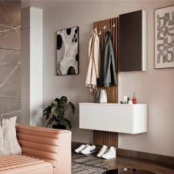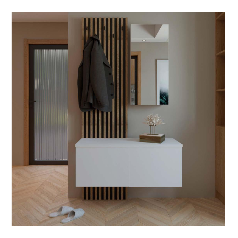 • Ideal para salón-comedor o cualquier estancia. • Está compuesto por un módulo bajo y una estantería. • Tablero de partículas melaminizado. • Bisagras metálicas. • Sistema de retención para la puerta batiente. • Sistema de apertura tipo "PUSH". • Tacos ABS. • Estante no regulable en altura.