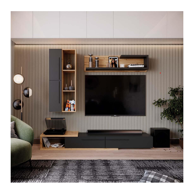 MUEBLE TV NORMANDIA, COMPOSICIÓN APILABLE DE SALÓN 250 CM, COLOR TAHO-ANTRACITA, GB25104100TA