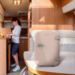 Nevera funcionamiento 12V-220V, compatible en tu coche, autocaravana, barco o simplemente conectarla a unas placas solares.. acabado cream Capacidad de 4 litros para que almacenes bebidas, alimentos o aquello que desees