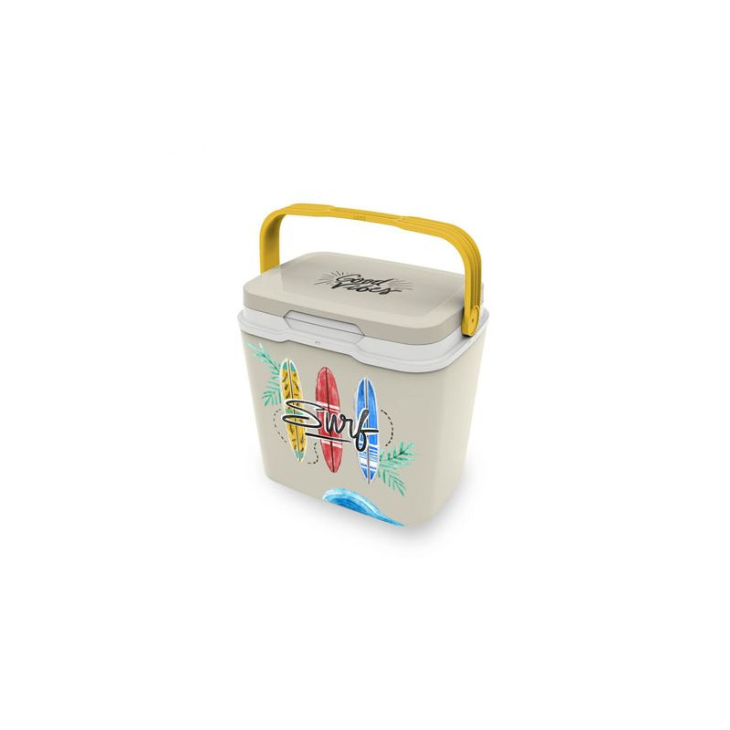 • Capacidad: 15 Litros. • Diseño: Summer time con ilustración de carrito de helados. • Aislamiento: 100% por los 6 lados. • Material aislante: poliuretano (calidad especial). • Rendimiento térmico: mantiene las bebidas frías por más de 12 horas. • Rango de temperatura conservada: entre 5° y 10°. • Componentes: asa de transporte ergonómica en color naranja...