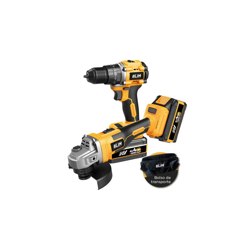 PACK 20V TALADRO + RADIAL S/CARBONES | 2 BATERIAS 4AH SERIE FAST BLIM BL0492