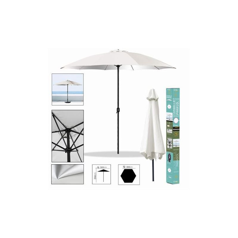 •Color antracita •Diametro 300cm •Altura: 245cm •180gr/m2 UV50 •Mecanismo de manivela •Base regulable