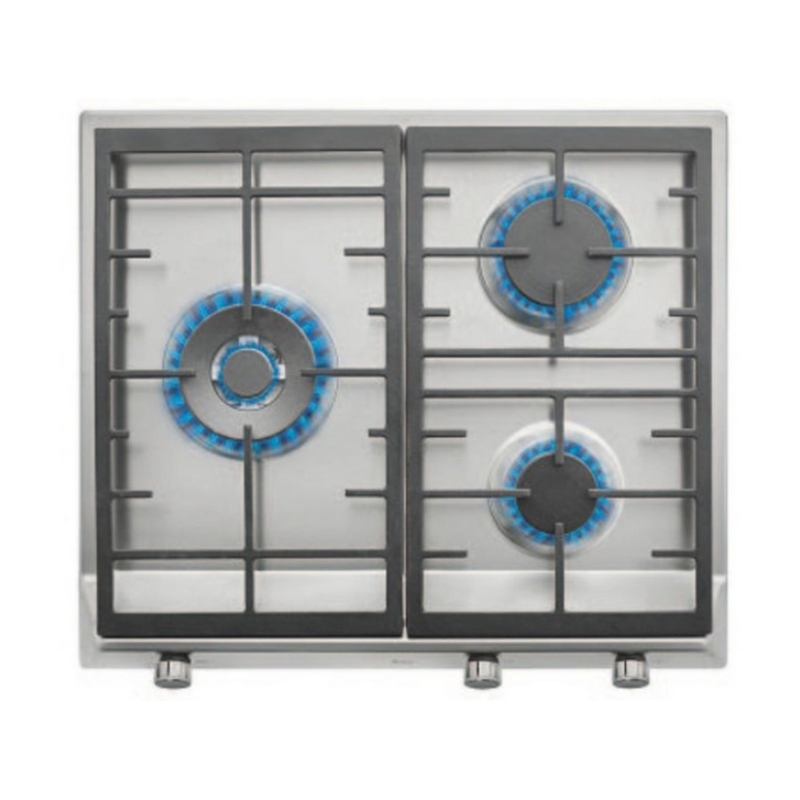 PLACA ACERO GAS TEKA EX 60.1 3G AI AL DR CI, 3 ZONAS, ZONA DE DOBLE ANILLO, AUTO ENCENDIDO, PARRILLAS DE FUNDICION, COLOR INOX
