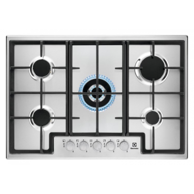 PLACA ACERO GAS ELECTROLUX KGS7536SX, 5 ZONAS, QUEMADOR DE WOK, BLOQUEO PARA NIÑOS, COLOR NEGRO ACERO INOXIDABLE.
