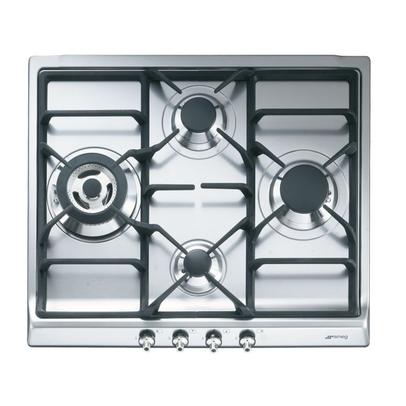 PLACA ACERO DE GAS - SMEG SER60SGH3, 4 ZONAS, ENCENDIDO ELECTRONICO, REJILLAS DE FUNDICION, COLOR ACERO INOXIDABLE.