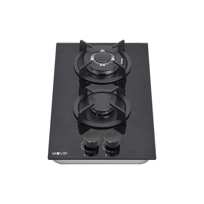 PLACA CRISTAL DE GAS MODULAR - MUVIP MV0627, 2 FUEGOS, CRISTAL NEGRO.