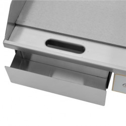 • Equipada con termostato regulable (50–300°C), limitador de temperatura de seguridad, piloto luminoso de encendido y luz de calor, es una plancha fiable, segura y de alto rendimiento para cocinas profesionales.