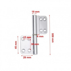 Especificaciones Clave: Producto: Bisagra de 5 aletas Aplicación: Puerta de autocaravana Largo Total: 20 cm Ancho: 3 cm Longitud de las Aletas Individuales: 4 cm y 3 cm (alternadas) Longitud de la Sección Articulada (5 aletas): 19 cm Color: Negro