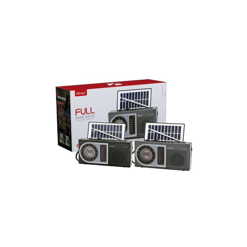 • Sintonizador de radio: Soporta bandas FM, AM y SW (onda corta). • Fuentes de energía: • Panel solar integrado en la parte superior para carga autónoma. • Batería recargable interna. • Compartimento para pilas tradicionales (opcional). • Entrada de carga de corriente continua (DC 5V). • Conectividad y reproducción: • Puerto USB para pendrives. • Ranura...