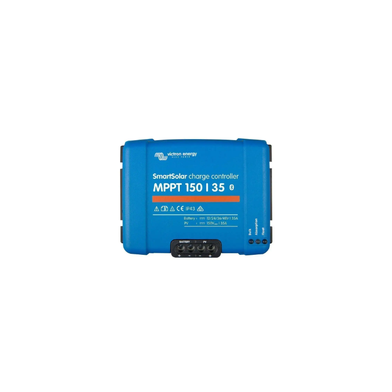 El Victron SmartSolar MPPT 150/35 es un regulador de carga solar de 35 A para sistemas de 12, 24, 36 y 48 V, preparado para trabajar con cadenas de paneles en serie de hasta 150 V de tensión de entrada.