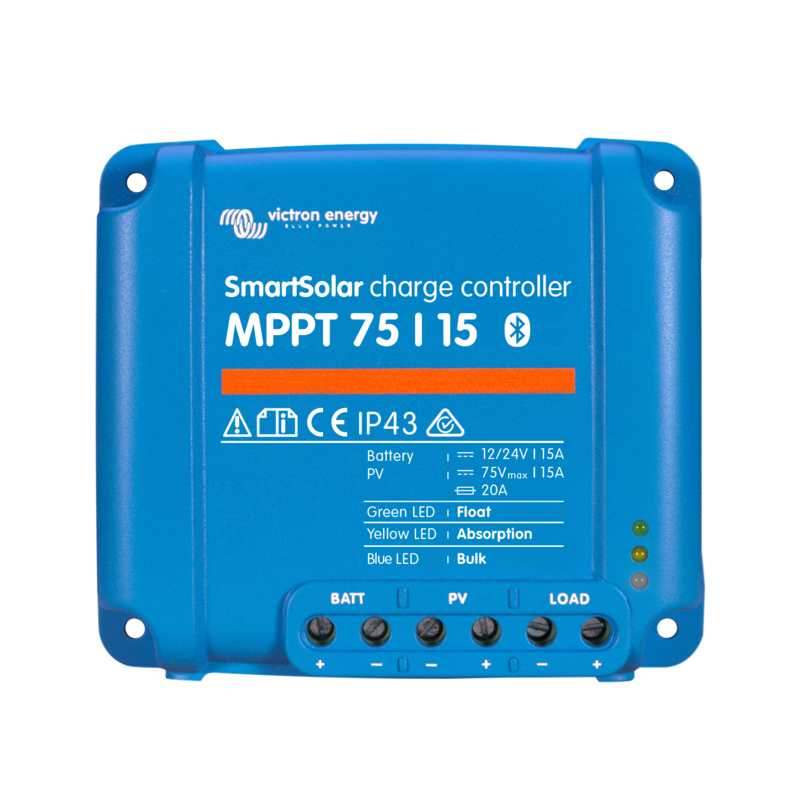 Incluye Bluetooth integrado, salida de carga con BatteryLife y conexión VE.Direct, perfecto para caravanas, embarcaciones y pequeñas instalaciones aisladas con algo más de consumo que el modelo 75/10.