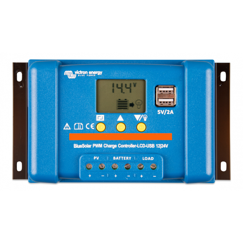 Controlador de Carga Victron Energy BlueSolar PWM-LCD & USB 12/24V 30APantalla de cristal líquidoPara seguimiento y configuraciónSalida de cargaSe puede evitar que la batería se descargue en exceso conectando todas las cargas a la salida de carga.