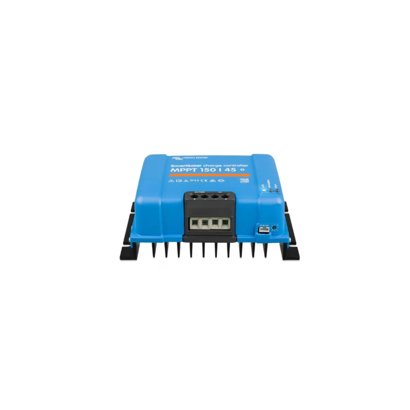El SmartSolar MPPT 150/45 actúa como un cargador solar inteligente. Ajusta continuamente el punto de trabajo de los paneles para encontrar el punto de máxima potencia (MPPT) y aprovechar al máximo la energía disponible, incluso con nubosidad variable o sombreados parciales.