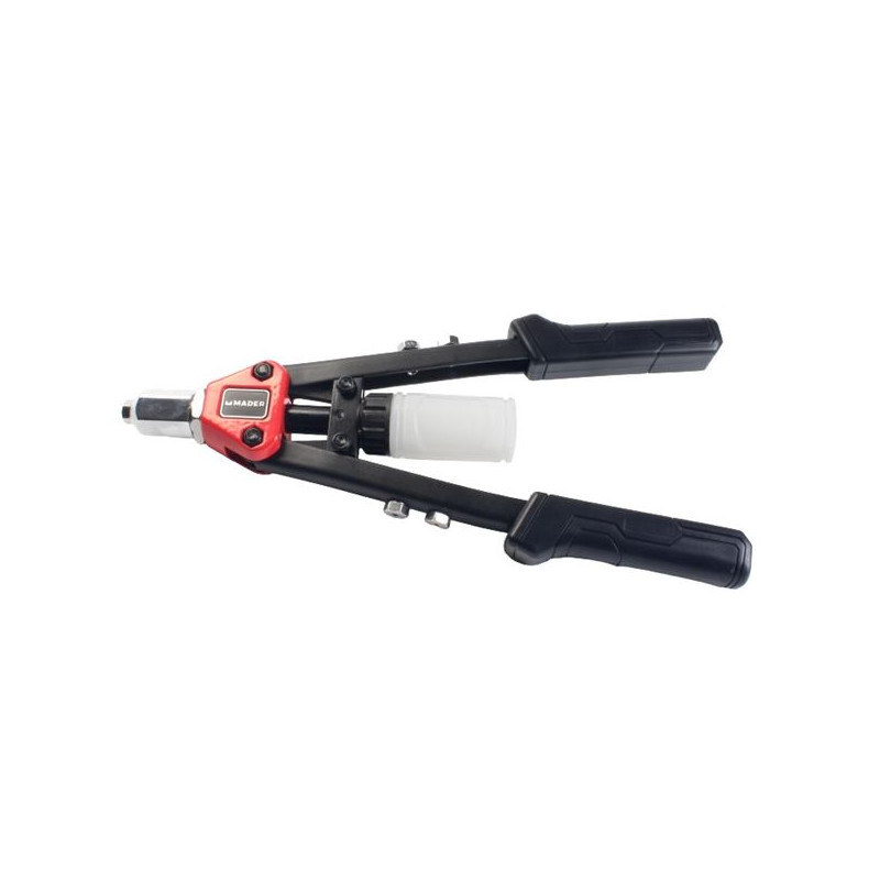 www.mipuntomovil.com . Cuerpo de aluminio.. Remaches hasta 4.8mm.. Longitud: 190mm.. Máxima carrera de trabajo: 6mm.. Máxima fuerza múltiple de brazo: 26.. Boquilla: 2.4mm / 3.2mm / 4.0mm / 4.8mm.. Peso: 720g.