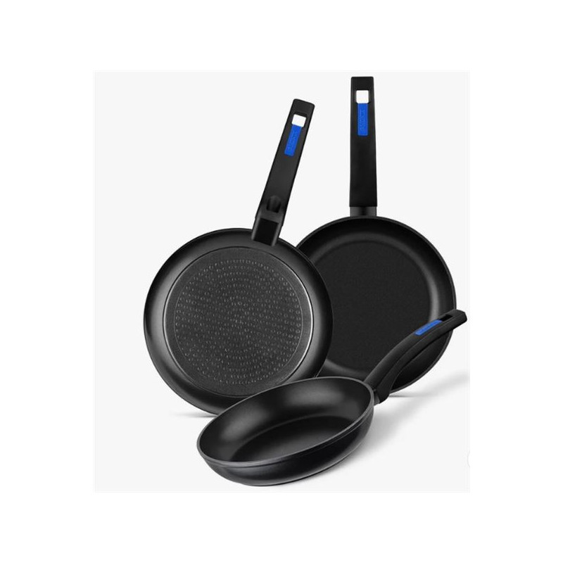 www.mipuntomovil.com • SET 3 SARTENES (Ø18+Ø20+Ø24cm) CLICK & COOK. • CONSTA DE 3 SARTENES DE LA COLECCIÓN CLICK & COOK EN COLOR NEGRO DE Ø18, Ø20 Y Ø24cm Y CUENTAN CON UN MANGO MULTIUSOS. • LAS SARTENES ESTÁN FABRICADAS EN ALUMINIO PRENSADO, UN MATERIAL LIGERO Y RESISTENTE. • MANGO DESMONTABLE QUE SE PUEDE INTERCAMBIAR ENTRE TODAS LAS PIEZAS. •...