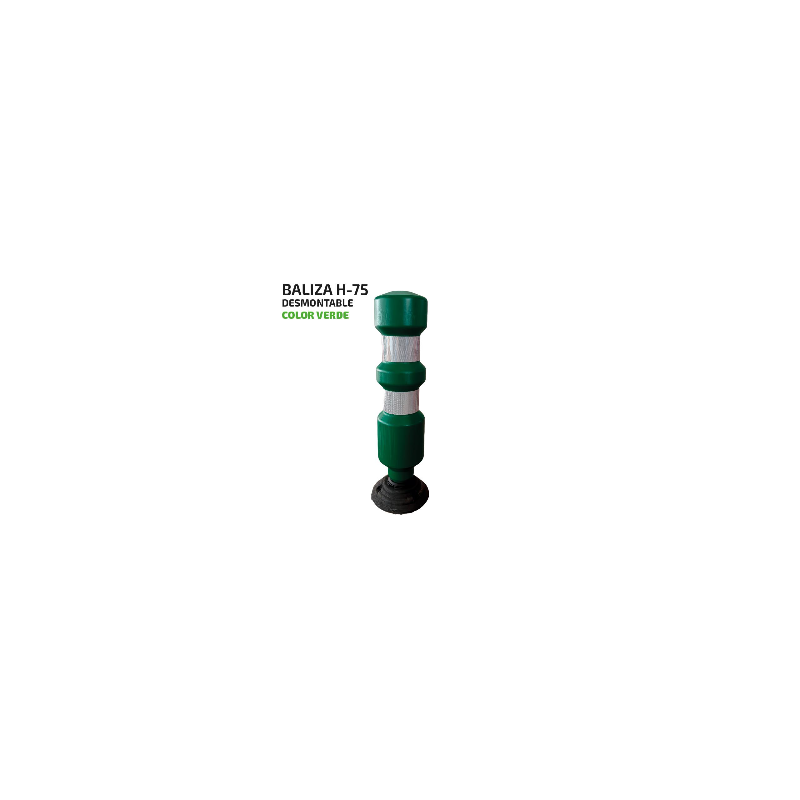 • Baliza de señalización vial color verde H-75. • Fabricada para delimitar y advertir sobre obstáculos o peligros en la vía pública. • Flexible y resistente a los impactos. • Con bandas reflectantes para mejorar su visibilidad.
