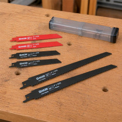. Pack: 16 unidades.. 1 x Sierra corte fino y curvo para madera: 12 dientes/pulgada y 50 mm longitud de corte.. 2 x Sierra corte fino para madera: 10 dientes/pulgada y 75 mm longitud de corte.. 3 x Sierra multiusos corte uniforme: 10 dientes/pulgada y 60 mm longitud de corte.. 2 x Sierra corte rápido para metal: 14 dientes/pulgada y 50 mm...