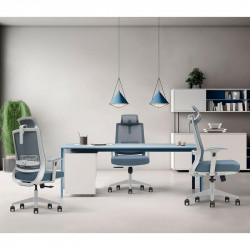 • Silla de oficina ergonómica con respaldo alto. • Soporte lumbar ajustable en altura y profundidad. • Reposacabezas ajustable en altura con suave acolchado de PU. • Asiento con espuma moldeada con diseño ergonómico. • Asiento deslizante. • Sistema de ajuste de tensión para ajustar la firmeza del respaldo. • Pistón elevador de Clase 4. • Base de aluminio...