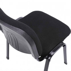 Sillón de oficina modelo Pisa con estructura negra, ajustable en altura y con base giratoria. Respaldo disponible en varios colores: negro, rojo y azul.