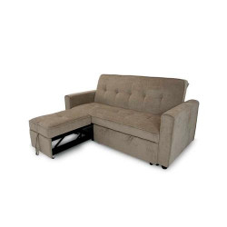 El sofá cama Victoria posee un moderno diseño en capitoné, dándole un toque distintivo a tu salón. Su respaldo reclinable te permite convertirlo en cama y ajustarlo a la comodidad de tu preferencia. Cuenta con chaiselongue y cama extraíble, ofreciendo la posibilidad de usarlo como sofá con chaiselongue, en una cama confortable o un sofá de 2 plazas. Además su relleno de espuma de alta densidad garantiza el confort que deseas para tus momentos de descanso.