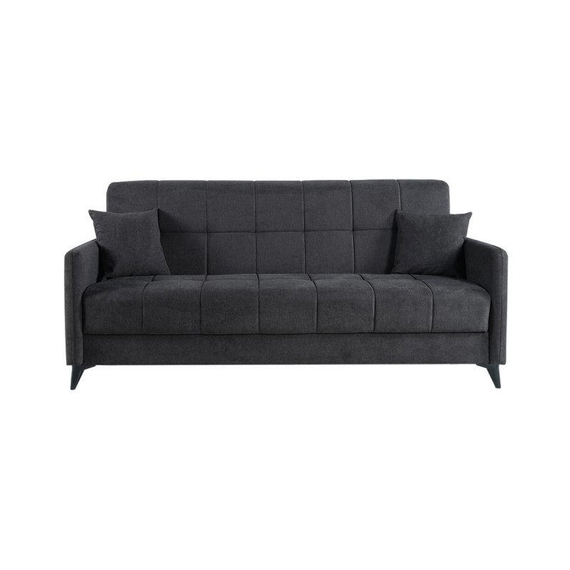 Este elegante sofá cama combina durabilidad y confort, con un armazón de pino gallego, asientos de goma espuma D-28 kg, y respaldos y brazos de fibra 100%. Sus mecanismos reclinables y superdeslizantes, junto con las patas altas en color negro, ofrecen funcionalidad y estilo para cualquier hogar. Medidas: Largo 295 x Fondo 145 x Alto 105 cm.