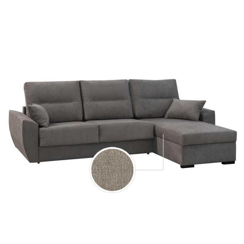 El sofá cama con chaise-longue modelo Góndola, cuenta con un mecanismo extensible que facilita su transformación en una cama, proporcionando una solución práctica para espacios pequeños. Su esqueleto está construido con madera de pino y tablero de partículas, asegurando una estructura robusta y duradera. Medidas: Largo 234 x Fondo 86/160 x Alto 100 cm.