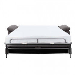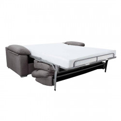 Este elegante sofá cama combina durabilidad y confort, con un armazón de pino gallego, asientos de goma espuma D-28 kg, y respaldos y brazos de fibra 100%. Sus mecanismos reclinables y superdeslizantes, junto con las patas altas en color negro, ofrecen funcionalidad y estilo para cualquier hogar. Medidas: Largo 295 x Fondo 145 x Alto 105 cm.
