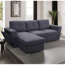Sofá 2 plazas Clony con chaiselongue reversible y arcón, también se hace fácilmente cama, lo que lo hace una excelente opción para pisos de dimensiones pequeñas, a un precio inmejorable. Medidas: Largo 220 x Fondo 155 x Alto 96 cm.