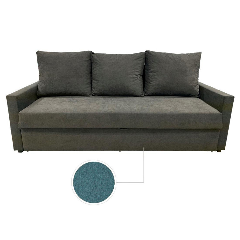 • Sofá cama de tres plazas color gris. • Fabricado con tela y estructura de aglomerado y metal. • Sólidas patas de metal. • Fácil de montar. • Medidas como sofá: 194x90x98 cm (Ancho x Profundidad x Alto). • Medidas como sofá-cama: 194x121x41 cm (Ancho x Profundidad x Alto).