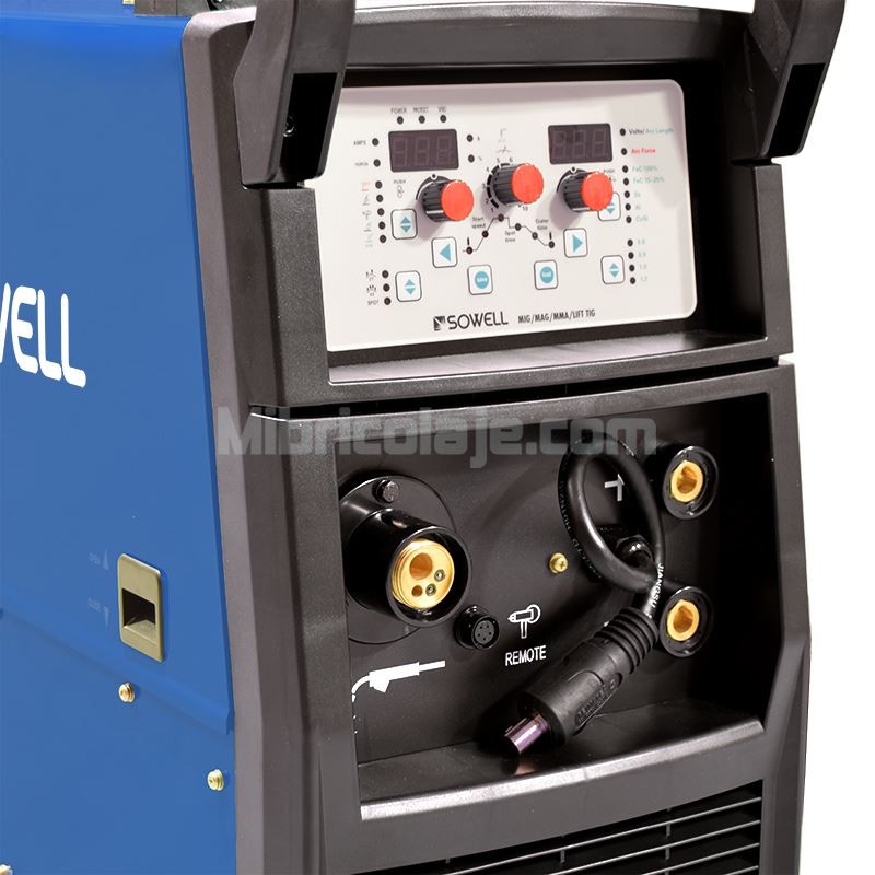 . Soldador de hilo 120A.. Para uso y sin gas.. Hilo animado: 0.6-1.0 mm.. Incluye 2 rodillos 0.6/0.8-0.9/1.0.. Bobina hasta 1 Kg.. Potencia absorbida: 3.91 Kva.. Accesorios incluidos.. Dimensiones: 35 x 18 x 30 cm.. Peso: 13 kg.