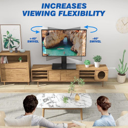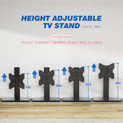 GIRATORIO Y ALTURA – Este soporte televisión se puede girar 40 grados a la izquierda o a la derecha respectivamente y se puede ajustar la altura de 332-482 mm para proporcionarle un mejor ángulo de visión.