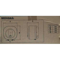 Capacidad (L) : 80 Potencia (W) : 1.500 Instalación en pared : Vertical Termostato : Exterior Ánodo de magnesio Tiempo de calentamiento (minutos) : 95 Forma : Cilíndrica Cuba : De acero con esmalte vitrificado Presión máxima de trabajo (bar) : 8 Tensión (V) : 230 Termómetro exterior Frecuencia (Hz) : 50 Regulación de temperatura (°C) : 35 - 75...