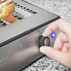 •Potencia: 1400W •Capacidad para 4 rebanadas •Ranura extra ancha de 38mm •Control electrónico de 7 niveles de tostado •Rejilla de fijación interna •Funciones cancelar, recalentar y descongelar •Sistema antiobstrucción •Bandeja recogemigas extraíble