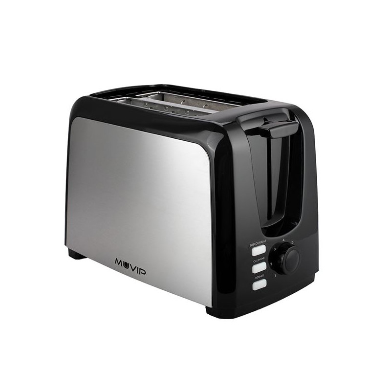 TOSTADORA DE PAN 850W DESIGN MUVIP • Potencia: 850W • Paredes exteriores de tacto frío. • Capacidad para 2 rebanadas de pan. • Función calentar, descongelación y recalentar. • Bandeja recogemigas • Selector con 7 niveles de tostado • Parada automática y manual • Indicadores luminosos.